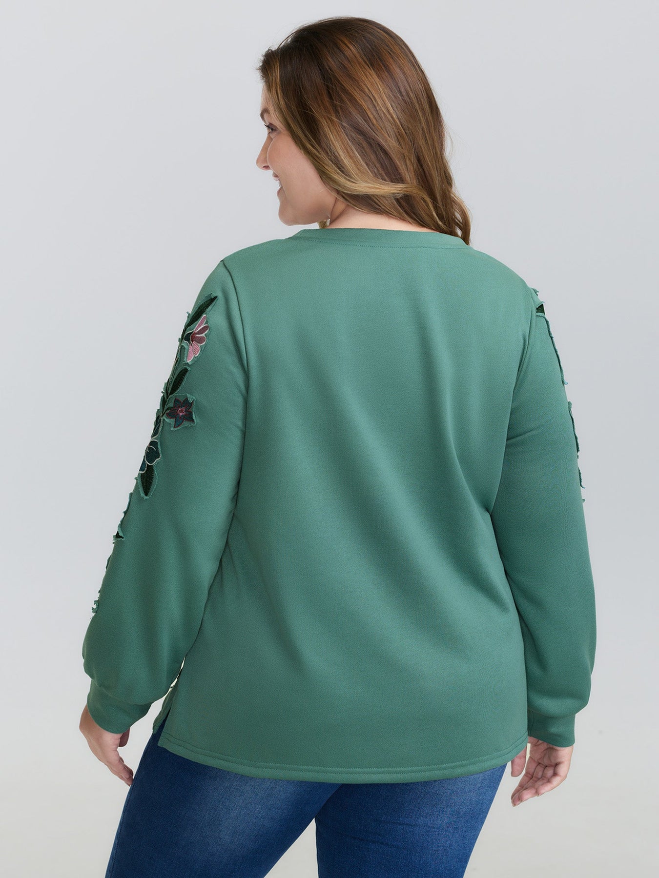 Shop Floral Applique Embroidery Stretchy Sweatshirt now and redefine your style with confidence at BloomChic. Tailored for mid and plus-size women. This trendy Tops Women, sizes 10-30. Color:Greenbean;Style:Leisure;Neckline:Round Neck;Sleeve Type:Regular Sleeve;Prints:Non;Details:Embroidered;Pocket:No-pocket;Belt:No-belt;Closure Type:Non